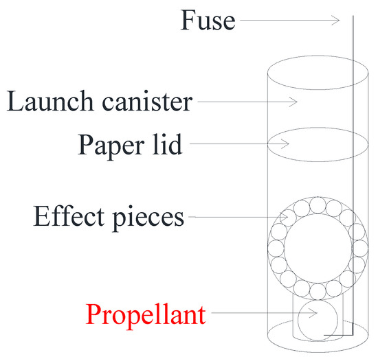 The primary experimental samples studied in this paper are from multitube fireworks products purchased from Tianjiao fireworks factory (Liuyang, Hunan, China). Their internal structure is diagrammed in Figure 1.