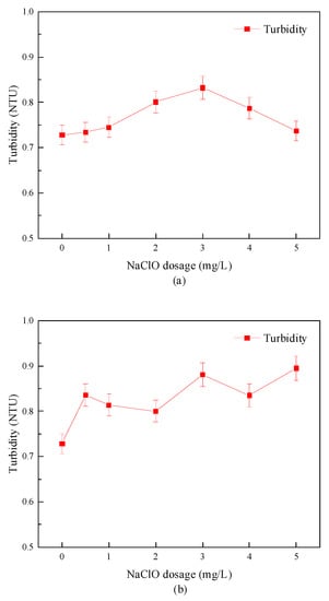 Turbidity removal effect of combined disinfection method. (a) “Method A”; (b) “Method B”.