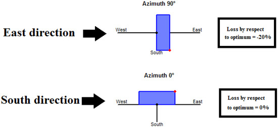 Simulation of the solar radiation loss with respect to the optimum in different directions.