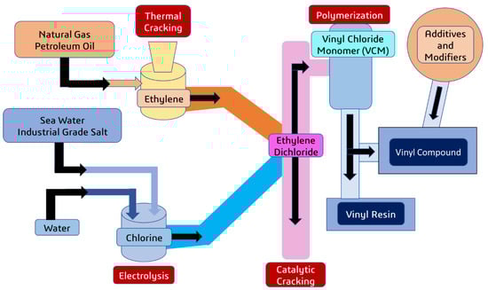 - How Is PVC Made? South East Europe PVC Forum. Available online: http://www.seepvcforum.com/en/content/5-how-is-pvc-made (accessed on 20 July 2022).