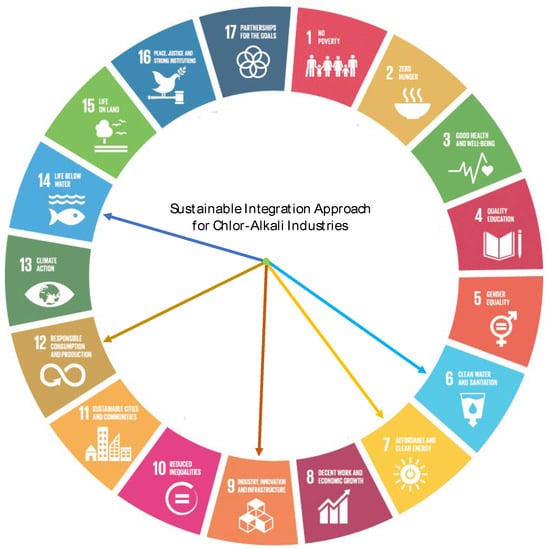 Some of the Sustainable Development Goals (SDGs) completely align with the concept of the chlor-alkali integration approach. The sustainable chemical consumption by the proper utilization of Cl2 and cleaner energy production through H2 power plants are the noteworthy direction of the integration initiative.