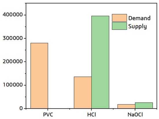 The demand and supply of PVC, HCl, and NaOCl in Bangladesh.