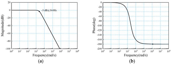 Figure 8 shows that after the dynamic analysis and parameter adjustment of the current loop, the bandwidth of the system’s current loop can reach 360 Hz. The current loop has a very strong response speed and can quickly track the instruction input signal.
