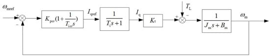 where Ki is the cut-off frequency after current loop correction. The speed loop usually adopts the PI controller; the control block diagram of the simplified system speed loop is shown in Figure 10.