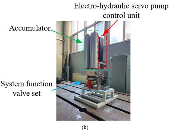 System test platform. (a) Hydraulic cylinder loading platform. (b) Pump control integrated unit.
