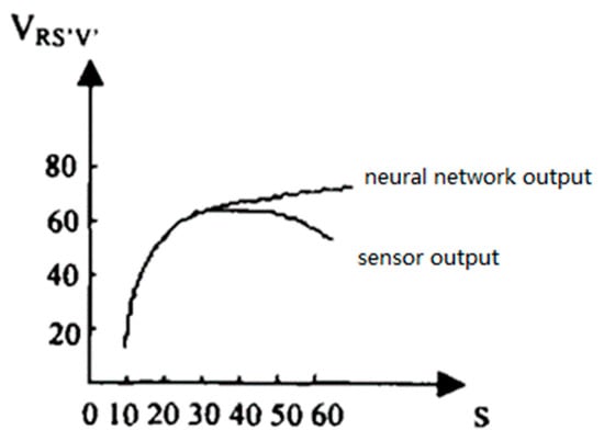 To actualize the sensor characteristics, the linear equation of the linear segment is produced using the best fitting approach, and the inverse function of the nonlinear segment of the sensor characteristics is mapped using an upgraded BP neural network as a corrective link. The simulation test results for linearization suggest that this method may almost ten times more effectively minimize the sensor’s nonlinear error [59,60,61]. The majority of these techniques transfer the inverse function of the sensing properties as a correction link in order to accomplish linearization. To correct the sensor’s nonlinear error, Zhang employed a single-input, single-output cerebellar neural network (SISO-CMAC) inverse operation. He also examined and demonstrated the SISO-CMAC algorithm’s convergence using the incremental learning approach [62], as shown in Figure 14.
