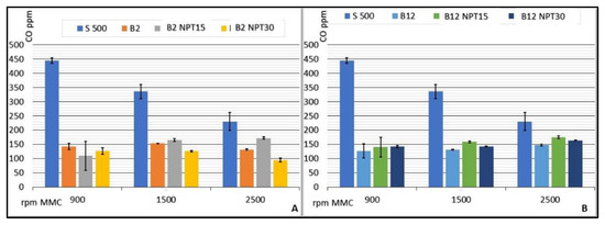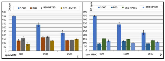 - Mahalingam, A.; Deverajan, Y. Radhakrishnan, S.; Vellaiyan, S.; Nagappan, B. Análise de emissões em biodiesel de óleo de mahua e misturas mais altas de álcool no motor diesel. Alex. Univ.-Alex. Eng. J. 2018, 57, 2627–2631. [Google Scholar] [CrossRef]