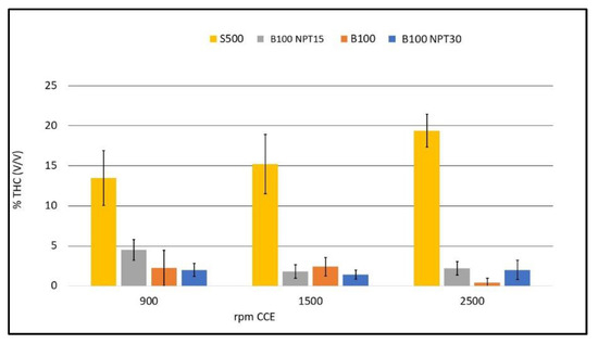 3.2.2. Total Hydrocarbons (THC) in the Exhaust Gas