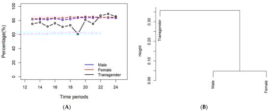 (A) The historical profiles of vaccination for various genders. (B) The hierarchical clustering for different groups based on their gender.