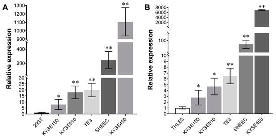 - Xu, W.W.; Zheng, C.C.; Zuo, Q.; Li, J.Q.; Hong, P.; Qin, Y.R.; Guan, X.Y.; He, Q.Y.; Liao, H.X.; Li, B. Genome-wide identification of key regulatory lncRNAs in esophageal cancer metastasis. Signal Transduct. Target Ther. 2021, 6, 88. [Google Scholar] [CrossRef]