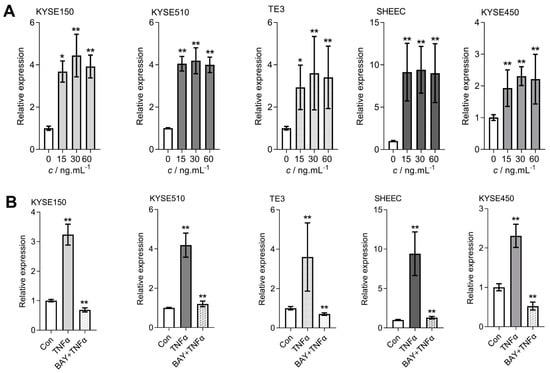 3.3. TNFα Encourages Expression of the BIRC3 Gene in Esophageal Cancer Cells