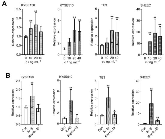 3.4. IL-1β Encourages the Expression of the BIRC3 Gene in Esophageal Cancer Cells