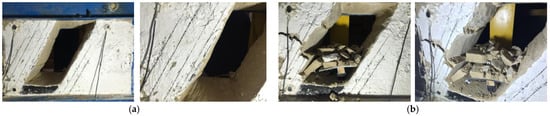 It can be seen from Figure 7 that when the impact appears, the coal and rock around the roadway are partially protruded and damaged, and the impact is relatively violent, the dust rises rapidly and fills the entire goaf area, and the deformation and damage scale of the roof on the left side of the roadway is relatively serious. The caving coal rock at the top of the layer also sank. When the coal rock is elastically deformed and the roof collapses, the damage intensity is not severe. If the roadway coal rock has supporting conditions, the coal rock mass is broken within a controllable range; the impact caused by the dynamic load appears, the coal rock damage range, and the extent of damage and the form of damage are significantly more serious. If the impact occurs during the mining process of the working face, the instantaneous displacement of the coal and rock in the roadway, and the extrusion and deformation of the roadway space will cause serious disaster consequences.