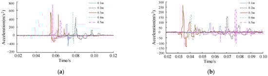 4.3.2. Acceleration Response Characteristics at Different Positions with the Same Energy