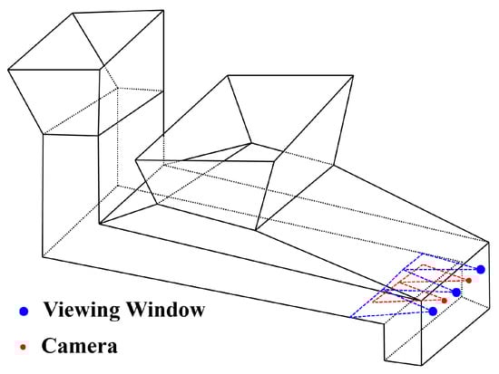 The neighbouring camera and the viewing window are close enough to ensure that a common area exists between the reference image captured at the viewing window and the source image captured by the video camera. Thus, this scenario well represents the scene in Figure 3.