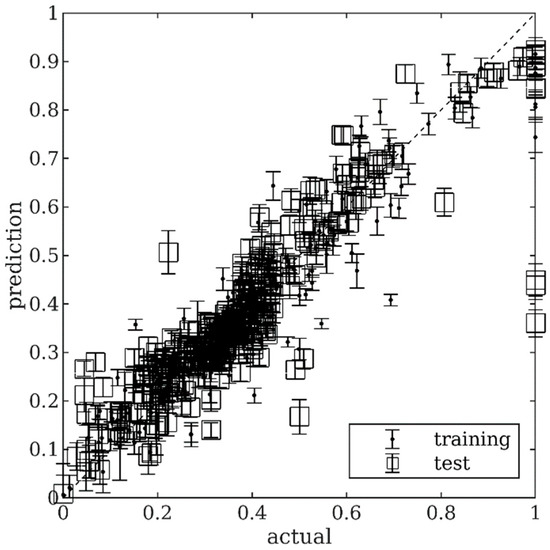 Similarly, the benefit of size reduction and pruning for ANNs in the context of optimization can be observed from [60], whose performance is relatively better compared to other benchmark studies using the same dataset [59]. Even though OA-ANN has poorer training performance compared to [60], OA-ANN exhibits the best test performance among all benchmarks reported in this paper, both in terms of reduced standard deviation and test error. The main reason for this observation is the fact that OA-ANN considers the covariance of the parameters as an optimization metric to be minimized, in addition to the training objective function. As a result, uncertainty regions of the OA-ANN predictions are tightened, as shown in Table 3. This tightening ultimately brings about much fewer values for MU, CV and , which in turn enhances both accuracy and precision of model predictions.