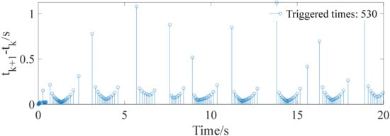 Prescribed performance control (PPC) techniques are widely used in nonlinear system research to simultaneously achieve the design requirements of stability, transient, and steady-state performance [14,15]. However, the tracking error of conventional PPC evolves strictly within a predefined envelope bounded by an exponentially decaying performance function [16], the tracking error converges only at an exponential rate, and the dynamic process is theoretically asymptotically convergent. Therefore, Li et al. [17] proposed a finite-time performance function (FTPF) to ensure that the tracking error converges within a specified time. Yet, this method is dependent on the initial conditions of the system. Hence, Liu et al. [18] developed a new FTPF with convergence time independent of initial conditions and design parameters was constructed, and the tracking error converged faster under the same parameters than Li et al. [17]. The above FTPF control studies [14,15,16,17,18] are executed in a time-triggered manner (i.e., control and update are periodic), which will generate a tremendous waste of resources, especially when a sufficiently small period is considered. Therefore, it is imperative to study an advanced control strategy that can not only balance transient and steady-state performance, but also save resources.