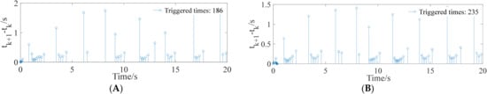 Triggered intervals. (A) X-direction, (B) Y-direction.
