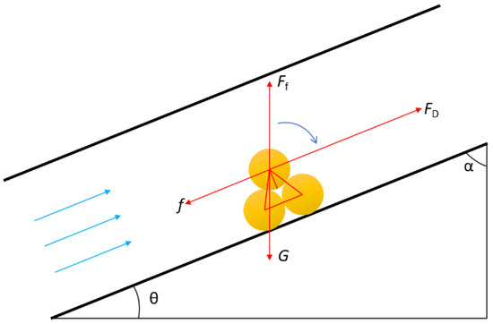 According to the experimental study on the cutting behavior in the wellbore, solid sulfur particles will form rolling motions when the wellbore inclination angle α is high, as shown in Figure 2.