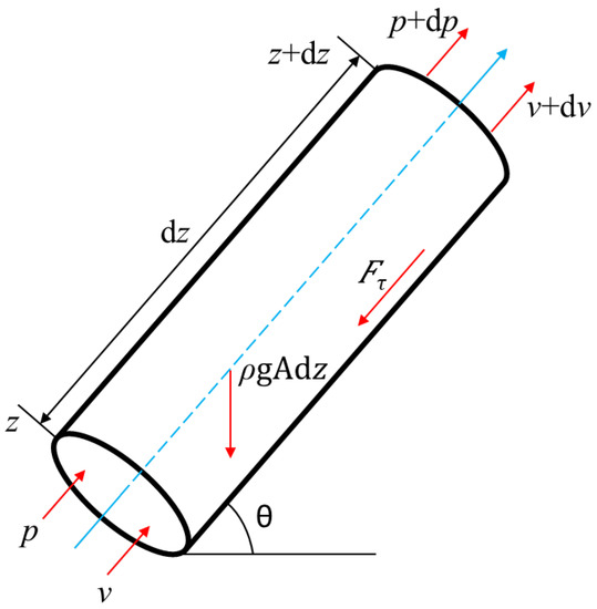 The external forces on the section mainly include the gravity, FG, friction, Fτ, and the external forces generated by the pressure difference. The expressions of each force are: