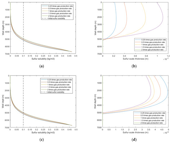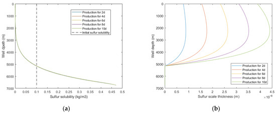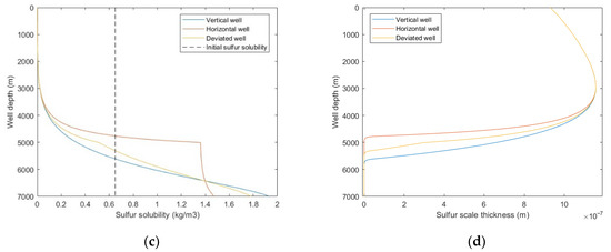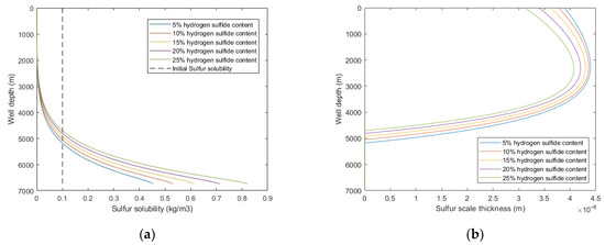 With the increase of sulfur deposition, the sulfur scale thickness increases and the wellbore diameter decreases, and its change equation is: