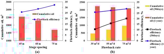 Cumulative oil and flowback efficiency profiles: (a) stage spacing. (b) flowback rate.