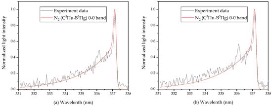 Fitting of N2 (C3Πu-B3Πg) at equivalent ratio of (a) 0.3 and(b) 0.5.