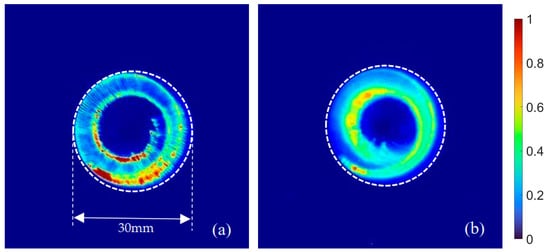 Axial imaging picture of swirl burner without filter, (a) pure air, (b) EQR = 0.5.