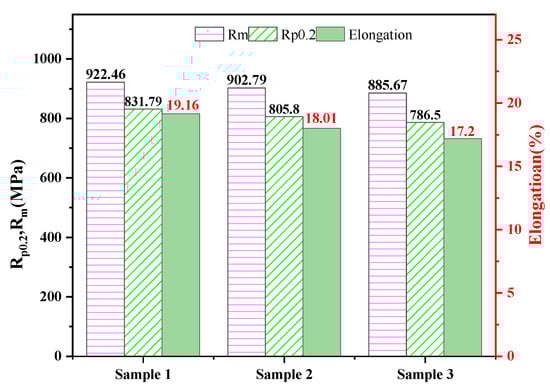 The 12.7 mm diameter round-rod tensile sample, the 10 × 10 × 55 mm longitudinal Charpy V-notch impact sample and hardness sample were taken from the failed drill pipe joint sample far from the fracture. The test results are shown in Figure 7 and Table 2. The results show that the tensile properties, longitudinal impact energy and hardness of the failed drill-pipe joint meet the requirements of API Spec 5DP-2010 and SY/T 5561. Therefore, there is no quality problem of the joint leading to the accident.