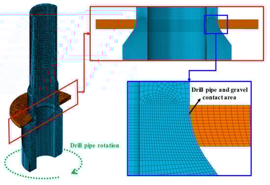 Model meshing and encryption of drill-pipe gravel contact area.