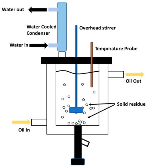 Before each test commenced, a sample of solution was taken to determine the amount of Si, Al, and Ca at the start of each test. The experiments were conducted in a jacketed glass reactor. The mixture was heated using silicon oil circulated using a VWR thermobath circulator. The temperature of the mixture was measured using a temperature probe connected to the circulator. The mixture was agitated using an overhead stirrer with a shaft and paddle impeller. Figure 1 shows a drawing of the experimental set-up. All the tests were conducted by adding the leachate solution to analytical reagent grade powdered CaO in the glass reactor. In each test, the mixture was heated to the desired temperature while being agitated at 400 rpm for 90 min. The time it took to reach the desired temperature was included in the entire duration of each experiment (90 min), and it varied according to the set temperature. Samples of solution were withdrawn at 15 min intervals for the duration of the test and vacuum filtered with 0.22 µm membrane for ICP-MS analysis of Si, Al, and Ca. At the end of each test, the reactor was emptied via a drainage valve at the bottom of the vessel. The contents were vacuum filtered with general purpose Whatman filter paper. The filter cake was dried at 60 °C for 2 days and analyzed via XRD. The amount of CaO used varied between 1 and 12 g. Three different temperatures were used, namely 40, 70, and 90 °C.