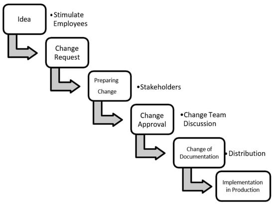 The general change process sequence as discussed by Tavcar and Duhovnik [] can gives a basic idea about how changes are handled or should be handled systematically. This process is illustrated in Figure 1.