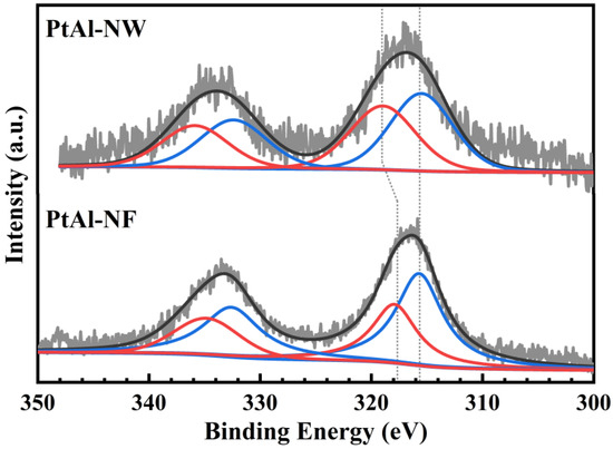 XPS Pt 4d spectra of PtAl-NF and PtAl-NW.