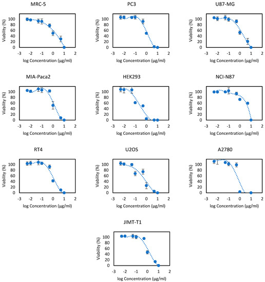 - GROUP IV: Includes five cancer cell lines: A549, MIA-Paca2, RT4, MRC-5 and JIMT-T1.