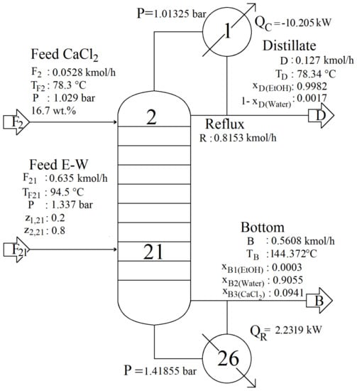 Figure 1 shows the diagram of the column used in the simulation of extractive distillation of the ethanol-water-CaCl