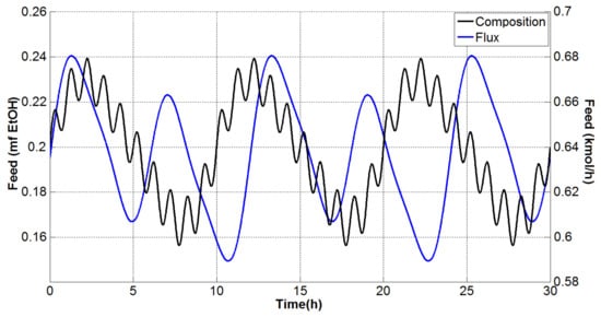 Finally, the control structures were simulated in the face of simultaneous sinusoidal variations in the flow and the composition of the main feed. The results of these simulations are reported in