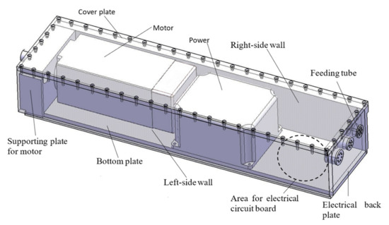 In the main control box, in addition to the above-mentioned plane joint surface, there is another important joint surface, which is the motor shaft joint surface. The minimum length of the motor shaft joint surface is 12.5 mm, and the maximum clearance is 0.20 mm. Considering the rotation of the motor shaft and the machining process of the joint surface, the width of the motor shaft joint surface is 25 mm, and the maximum clearance is 0.30 mm [14,15].
