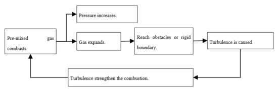 The feedback process of combustion velocity and turbulence of the flame are shown in Figure 2.