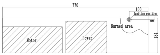 The cross section of explosion-proof cavity is rectangular, and the ignition position can be any point within the cavity. There are great differences between the rectangular and spherical combustion model. The rectangular one is more complex, because the height of the motor and power in explosion-proof cavity are almost the same as the inner cavity of explosion-proof cavity. The two-dimensional model is simplified from the cross section which includes an ignition source. As shown in Figure 4, regardless of the influence exerted by the edge of the box on the explosion, the combustion process inside the explosion-proof cavity is modeled as the following diagram.