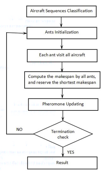 - Xu, B. An Efficient Ant Colony Algorithm Based on Wake-Vortex Modeling Method for Aircraft Scheduling Problem. J. Comput. Appl. Math. 2017, 317, 157–170. [Google Scholar] [CrossRef]