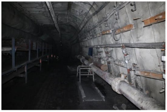 Following the use of water injection, advanced roof protection, and U-shaped shed support technology, statistics were collected and observations of surrounding rock and deformation of the rib were carried out during excavation. Data relating to the two sides of the roadway and roof subsidence were obtained. The effect on the roadway after the adoption of this support scheme is shown in Figure 13.