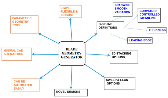 - Siddappaji, K.; Turner, M.G. Versatile Tool for Parametric Smooth Turbomachinery Blades. Aerospace 2022, 9, 489. [Google Scholar] [CrossRef]