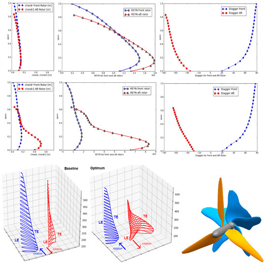 - Joly, M.; Verstraete, T.; Paniagua, G. Full design of a highly loaded and compact contra-rotating fan using multidisciplinary evolutionary optimization. ASME Turbo Expo 2013, 55232, V06BT43A009. [Google Scholar]