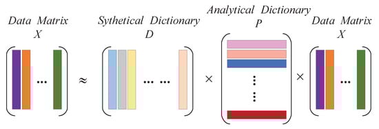 m denotes the number of dictionary atoms. The first term is the reconstruction function of data, the second term is the sparse regularization of analytical dictionary, and the third term is the low-rank constraint of synthetical dictionary.