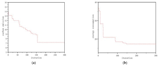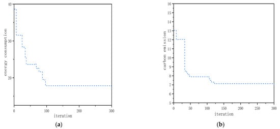 Iterative convergence graph of blank 2. (a) Energy consumption (b) Carbon emission.