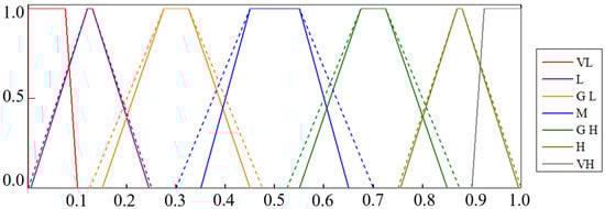 In this framework, expert elicitation is put to use for computing the probabilities of root events in the BN when the accurate probabilities of the events are lacking. In generally, the experts cannot give accurate probability values. This study therefore uses a method combining the TpIFNs and expert elicitation to elaborate the failure probabilities of each root node. Experts express their opinions on risk events in linguistic terms based on the practice or standards in the actual situation in this industry. In addition, the natural estimate of human memory capacity is 7 ± 2 grades [,]. Thus, 5–9 language terms scored by experts is most appropriate. Furthermore, heterogeneous expert judgment is adopted to reduce the prejudice of expert evaluation.