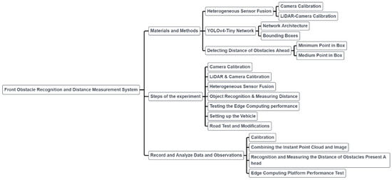In this research, we explain our methodology in three parts: heterogeneous sensor fusion, the YOLOv4-Tiny network and distance detection of obstacles ahead. The system architecture is shown in Figure 1. And the Mind Map is shown in Figure 2.