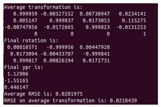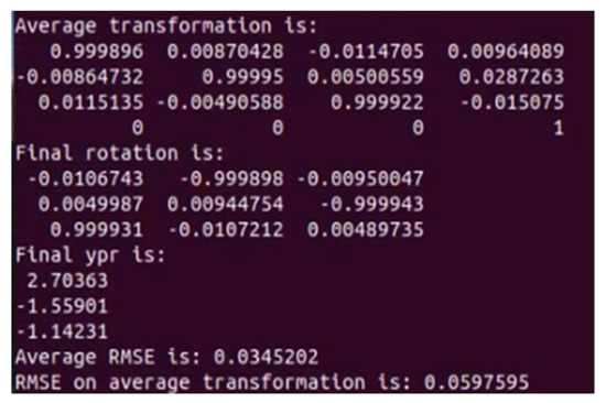 Figure 12 is the result of using two calibration plates. Average transformation is the transformation matrix that converts LiDAR coordinates to camera coordinates. During calibration, the distance between the sensor and the calibration plate is approximately 110 cm, and the calibration plate should occupy as much space as possible in the camera’s field of view.