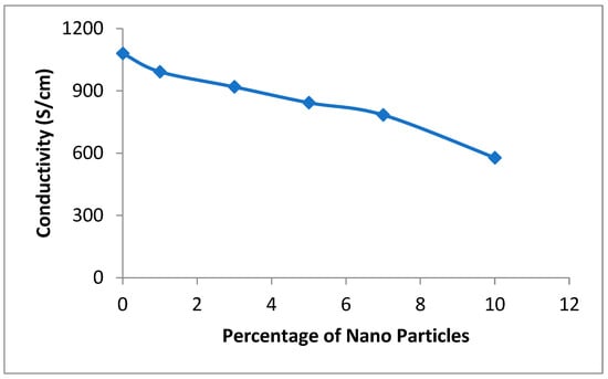 The plot of conductivity and nanoparticles’ percentage relationship.