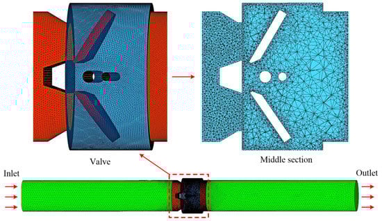 Nam-Seok Kim and Yong-Hoon Jeong used four different dynamic grid techniques to calculate the dynamic characteristics of the swing check valve during the closing period. The results show that the velocity distribution at the outlet of each method is similar before the valve is almost closed. When the valve has fully closed, the prediction of the inflow fluid velocity is different [12]. Zhounian Lai et al. carried out a three-dimensional transient state numerical simulation of a dual disc check valve and employed overlapping meshes to ensure the disc’s complete closing and pressure fluctuations were accurately captured. They explained the influence of the system outlet pressure, initial flow rate, and upstream pump closing speed on the pressure fluctuation caused by the closing of the check valve [13].
